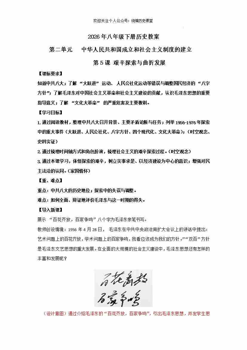 2.5 艰辛探索与曲折发展 教学设计 2025-2026学年统编版八年级历史下册