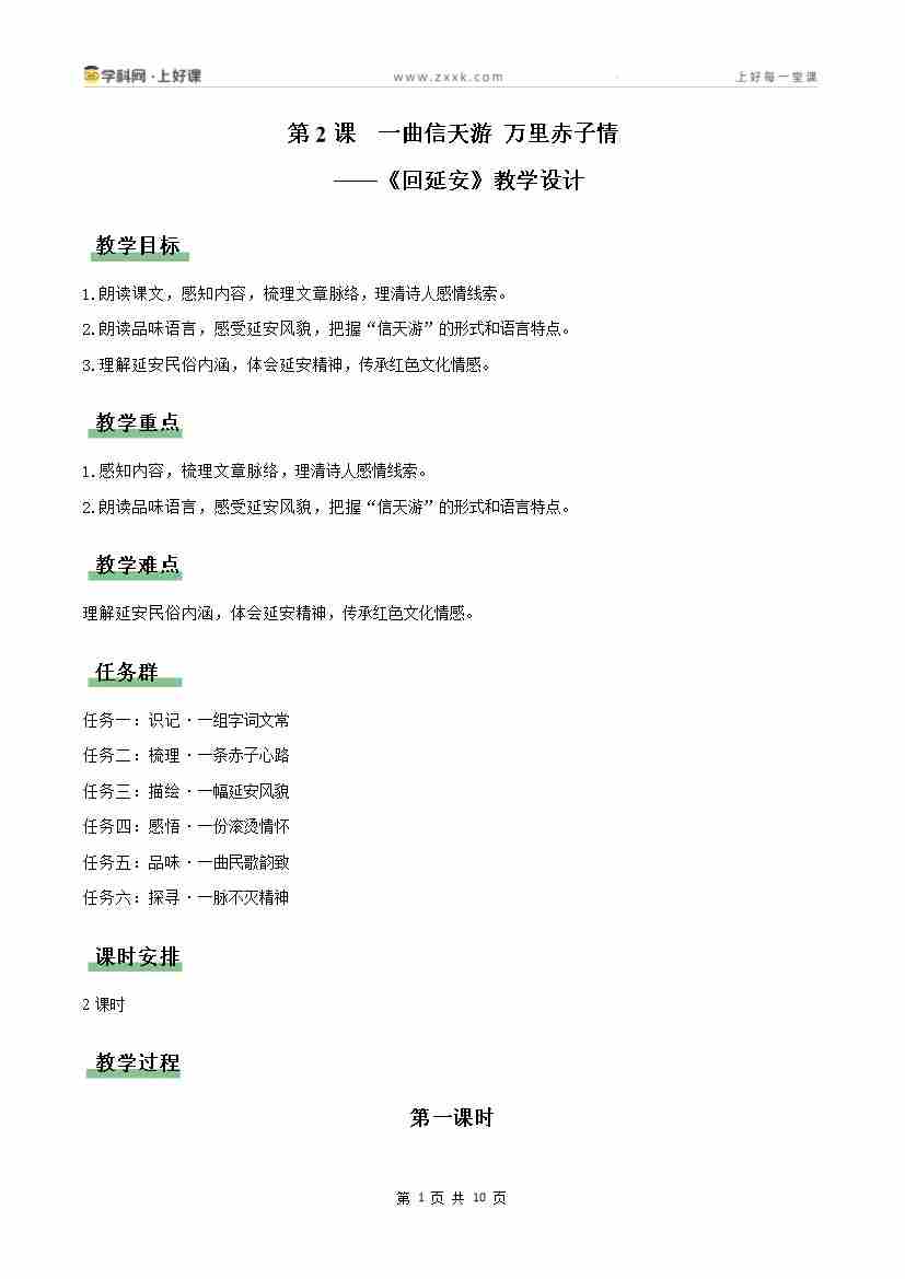 2 回延安:一曲信天游 万里赤子情(情境任务教学设计)语文统编版2026八年级下册