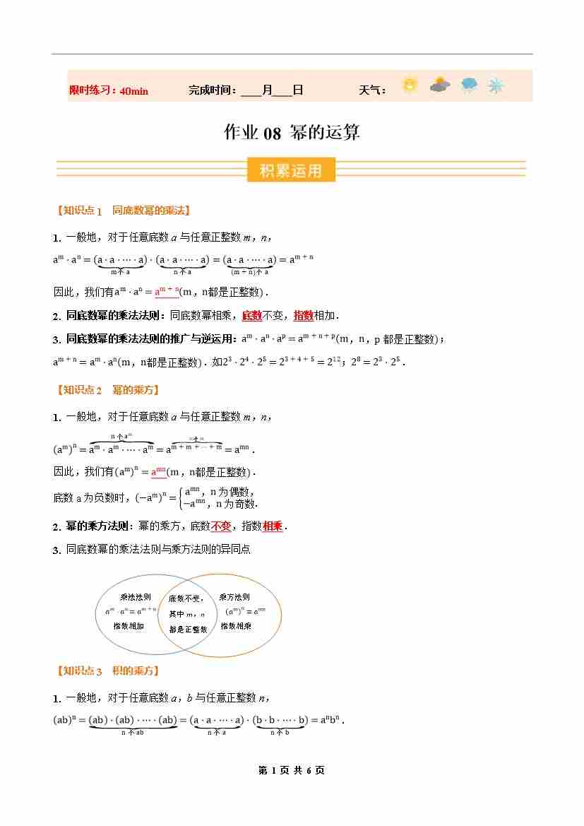 ③寒假培优练-专题08 幂的运算(巩固培优)八年级数学新教材人教版(学生版)-2026年八年级数学寒假衔接讲练 (人教版-新教材)