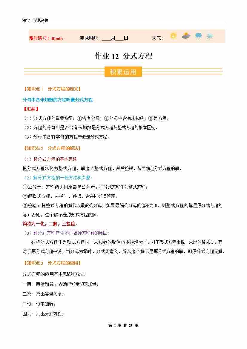 ③寒假培优练-专题12 分式方程(巩固培优)八年级数学新教材人教版(教师版)-2026年八年级数学寒假衔接讲练 (人教版-新教材)