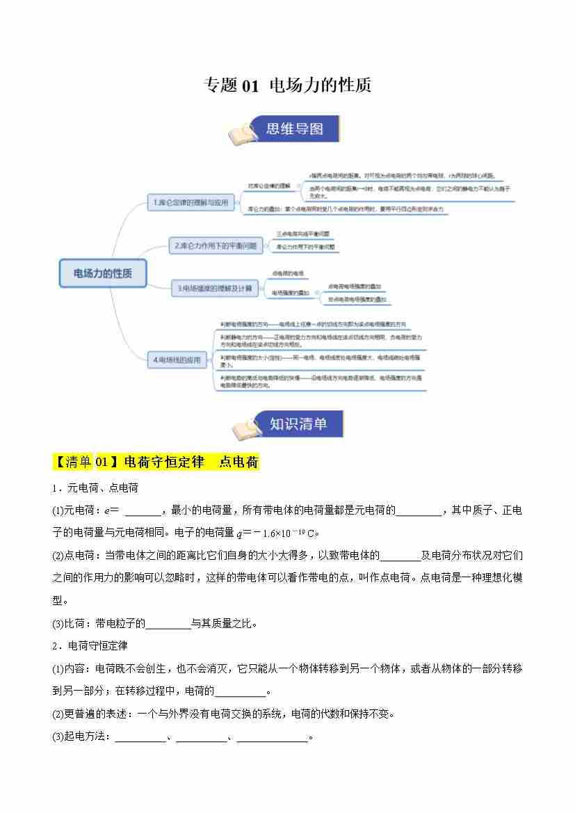 专题01 电场力的性质(期末复习知识清单)(学生版)
