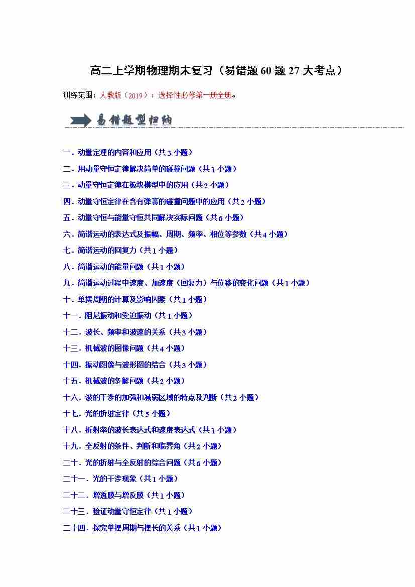 高二上学期物理期末复习(易错题60题27大考点)(学生版)