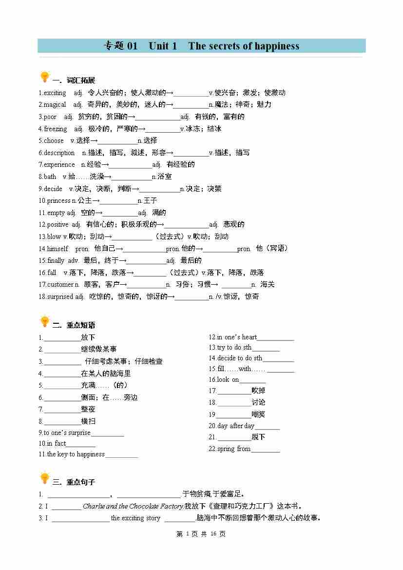 专题01 Unit1 The secrets of happiness同步讲义(学生版)