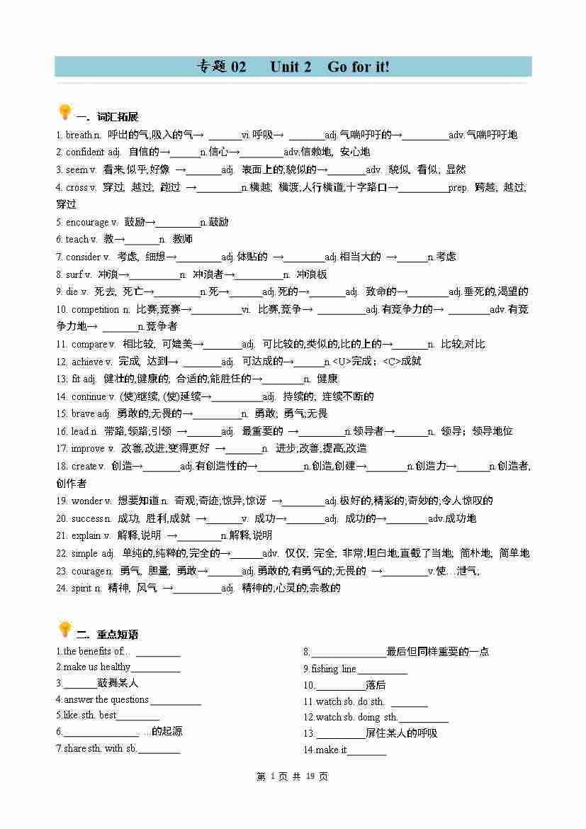 专题02 Unit2 Go for it!同步讲义(学生版)