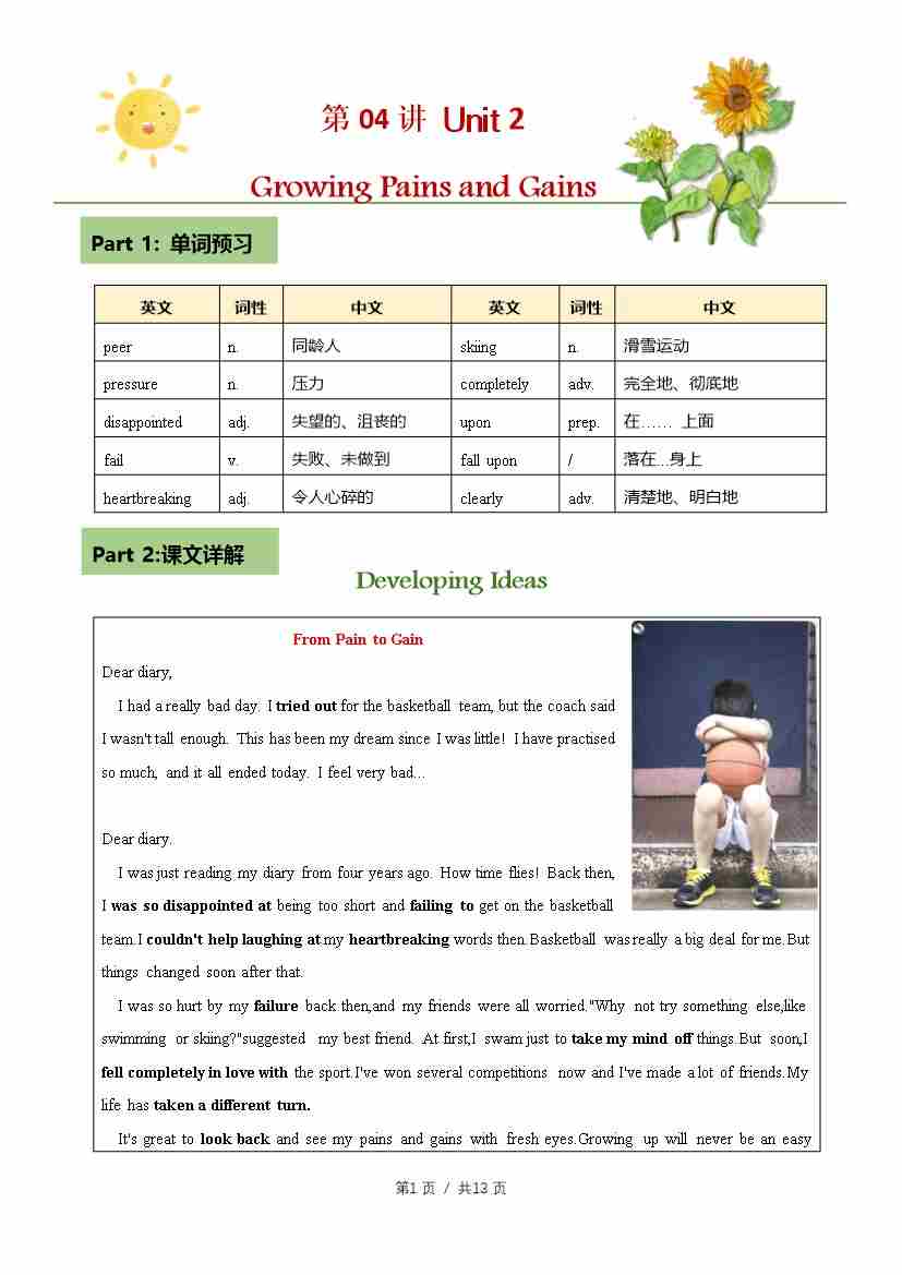第04讲 Unit 2 Growing Pains and Gains(学生版)