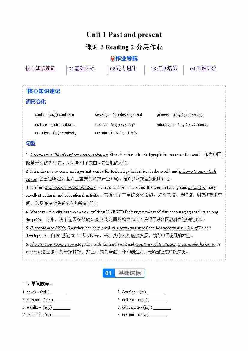 Unit 1 课时3 Reading 2(分层作业)(原卷版)3