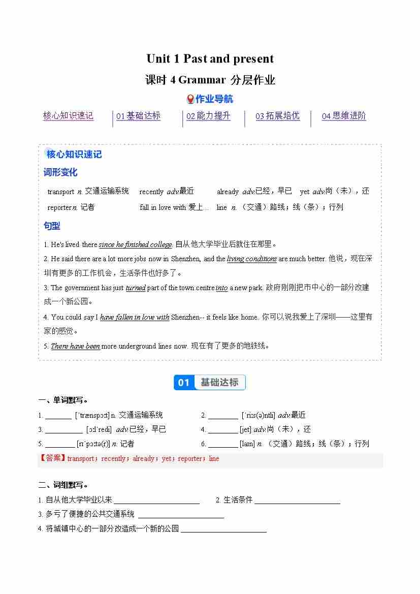 Unit 1 课时4 Grammar(分层作业)(解析版)22
