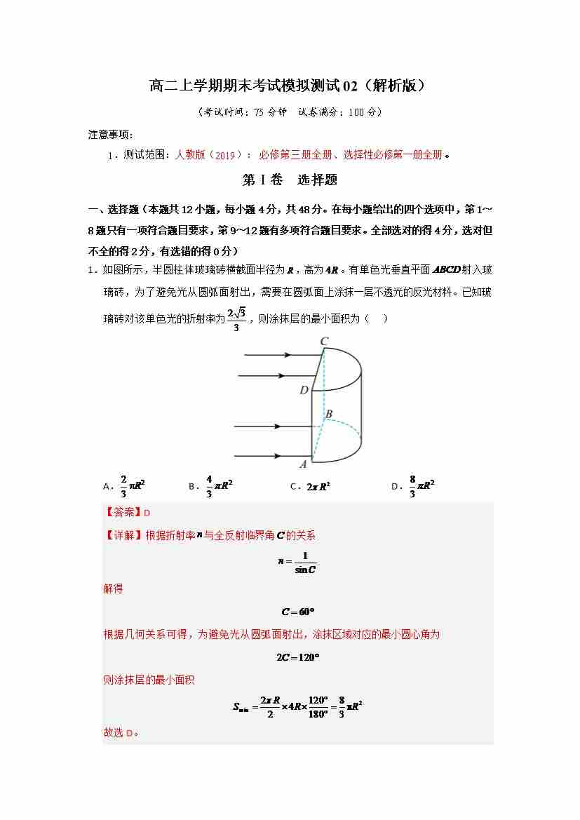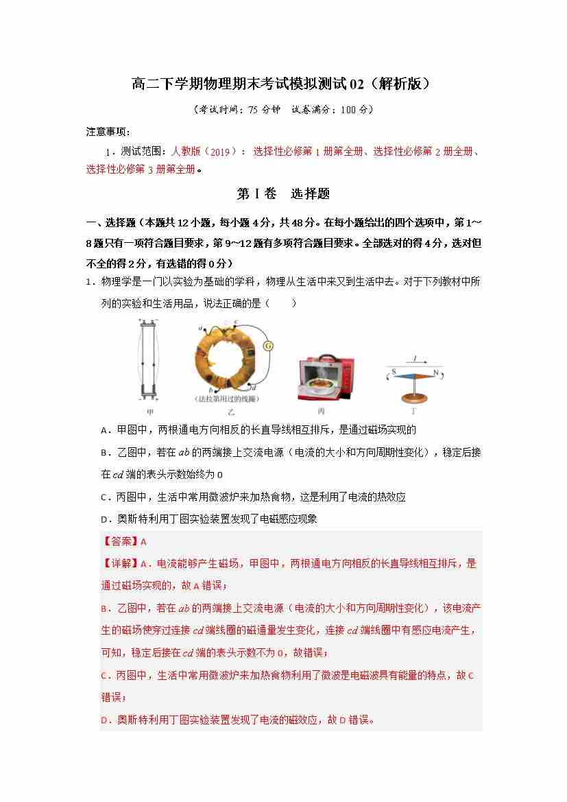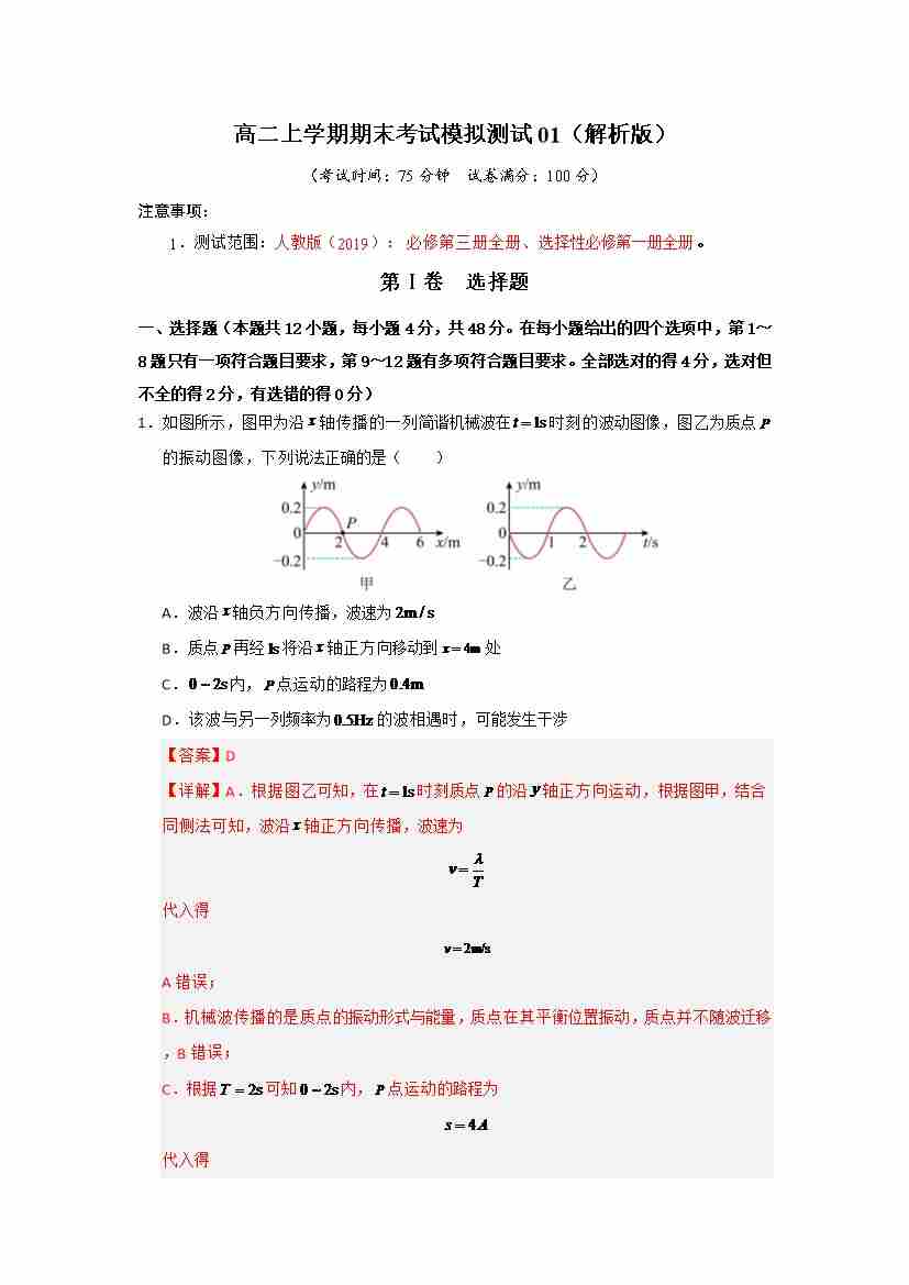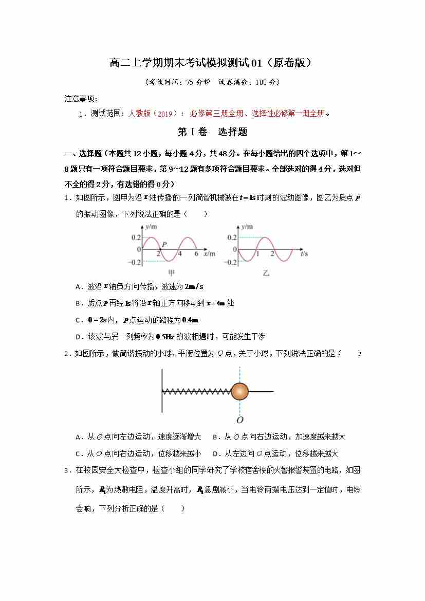 2025-2026学年高三上学期1月期末物理模拟卷(一)
