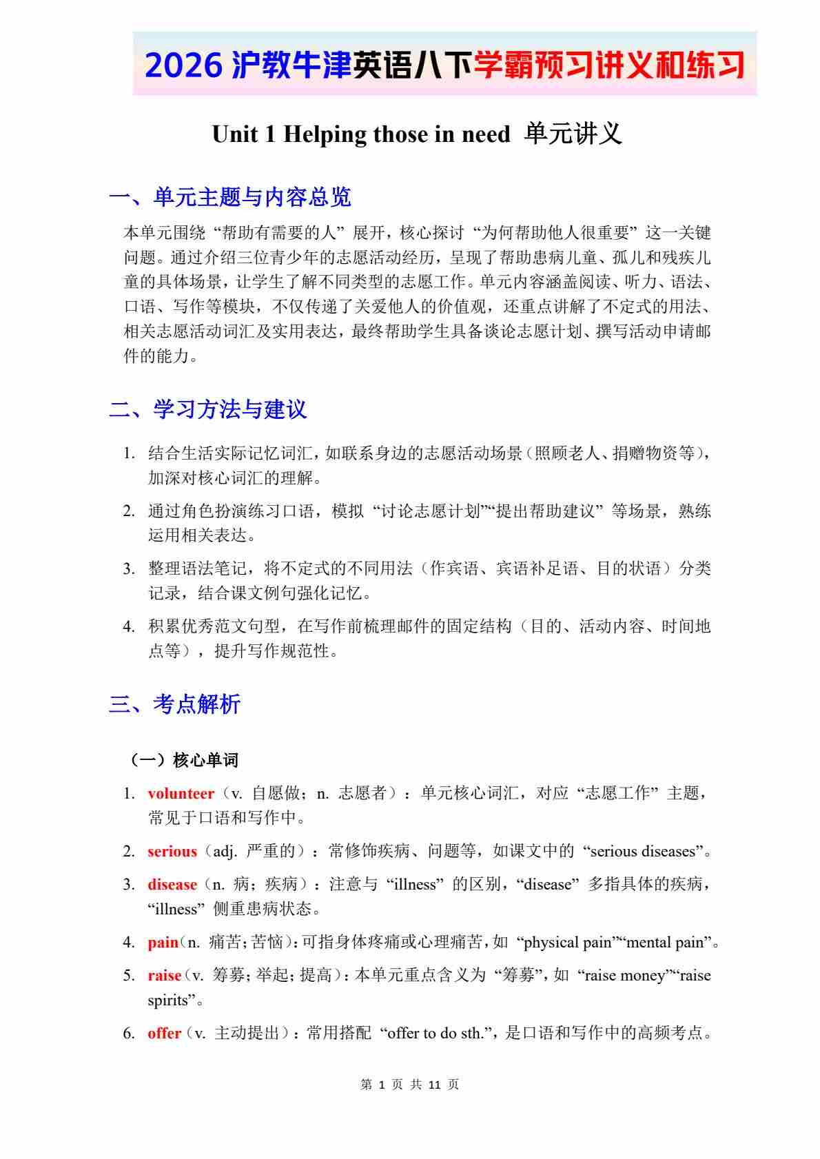 Unit 1 Helping those in need 语法Grammar 动词不定式(原卷版)