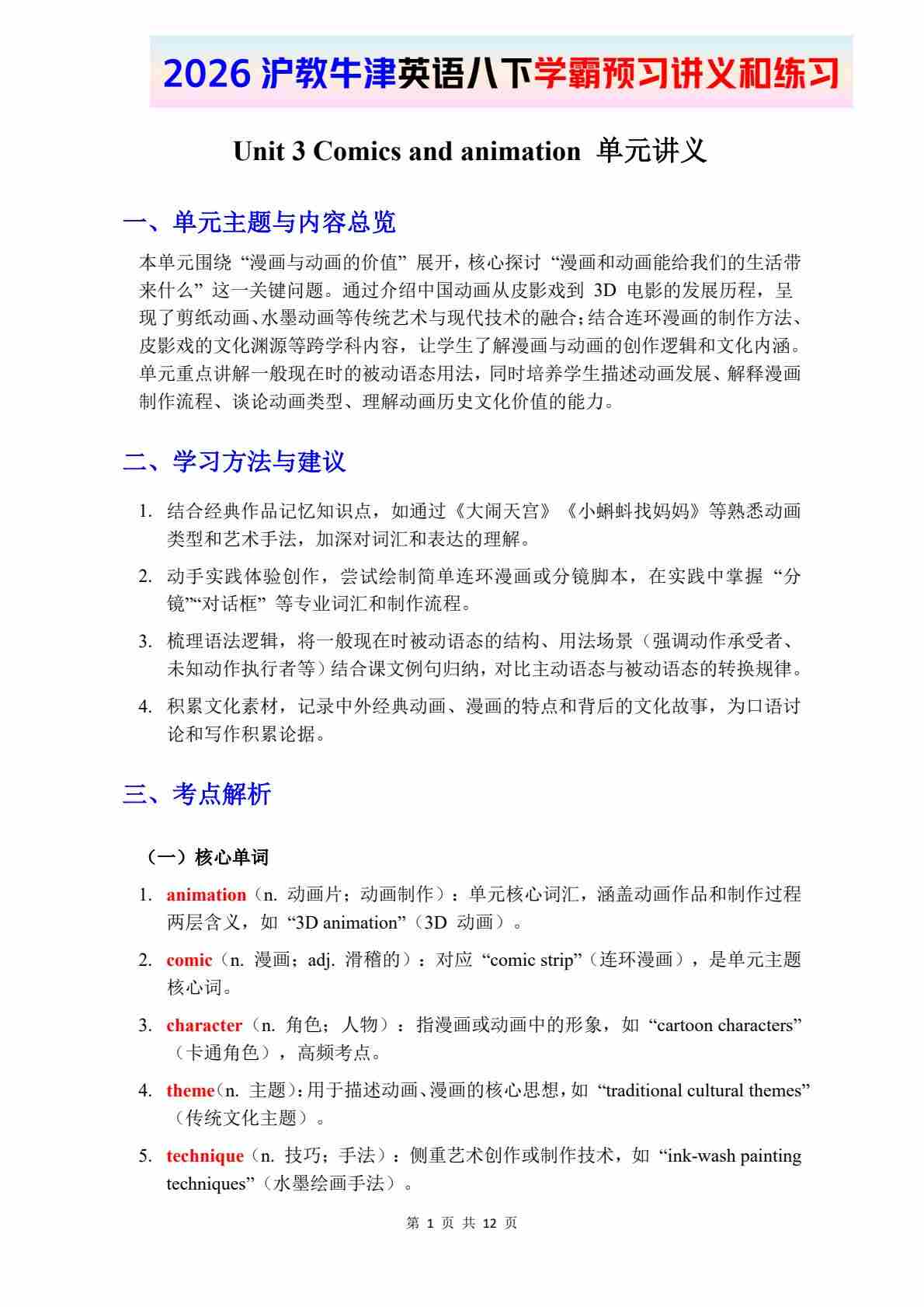 Unit 3 Comics and animation 语法Grammar 被动语态(1)(原卷版)