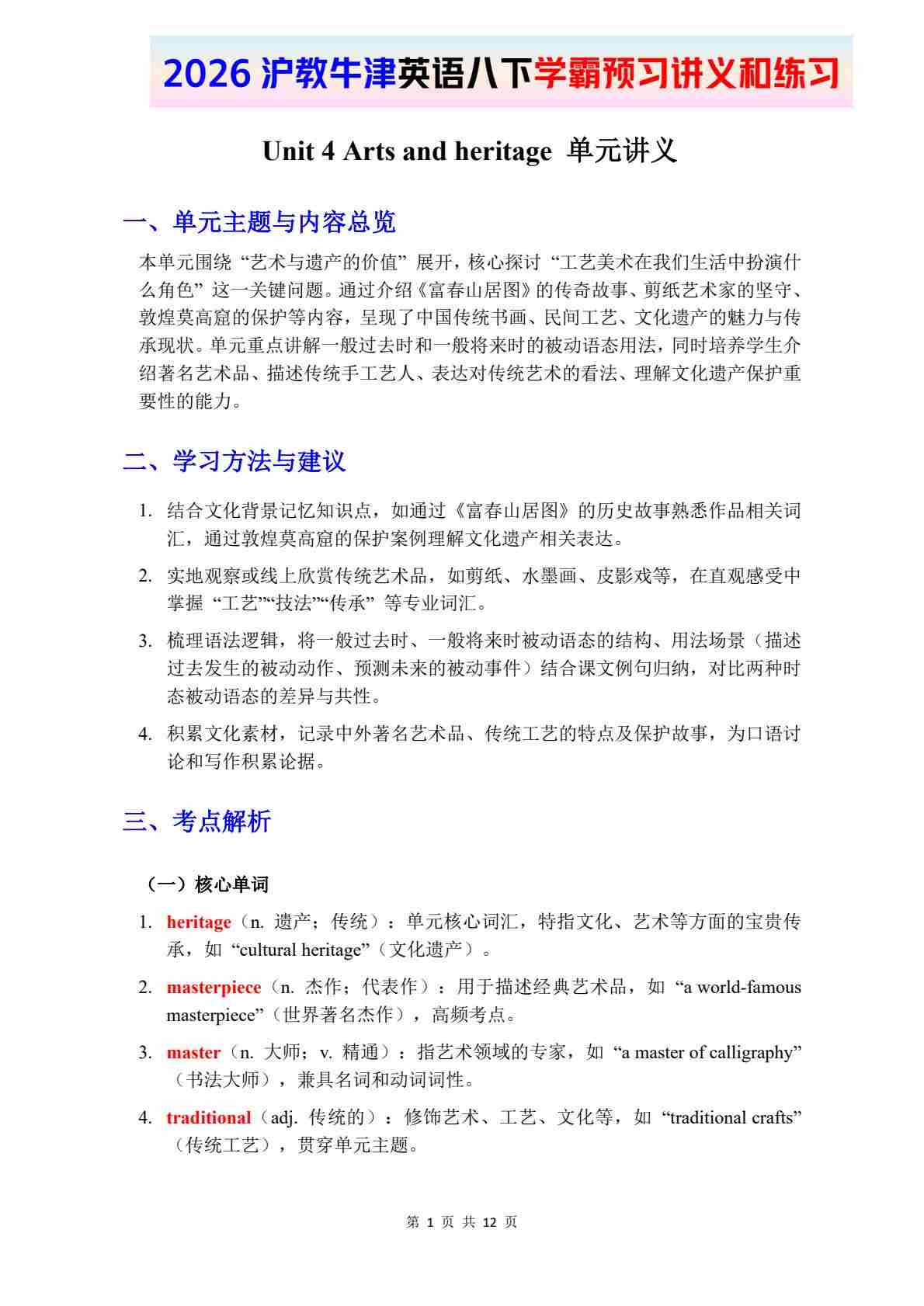 Unit 4 Arts and heritage 语法Grammar 被动语态(2)(原卷版)