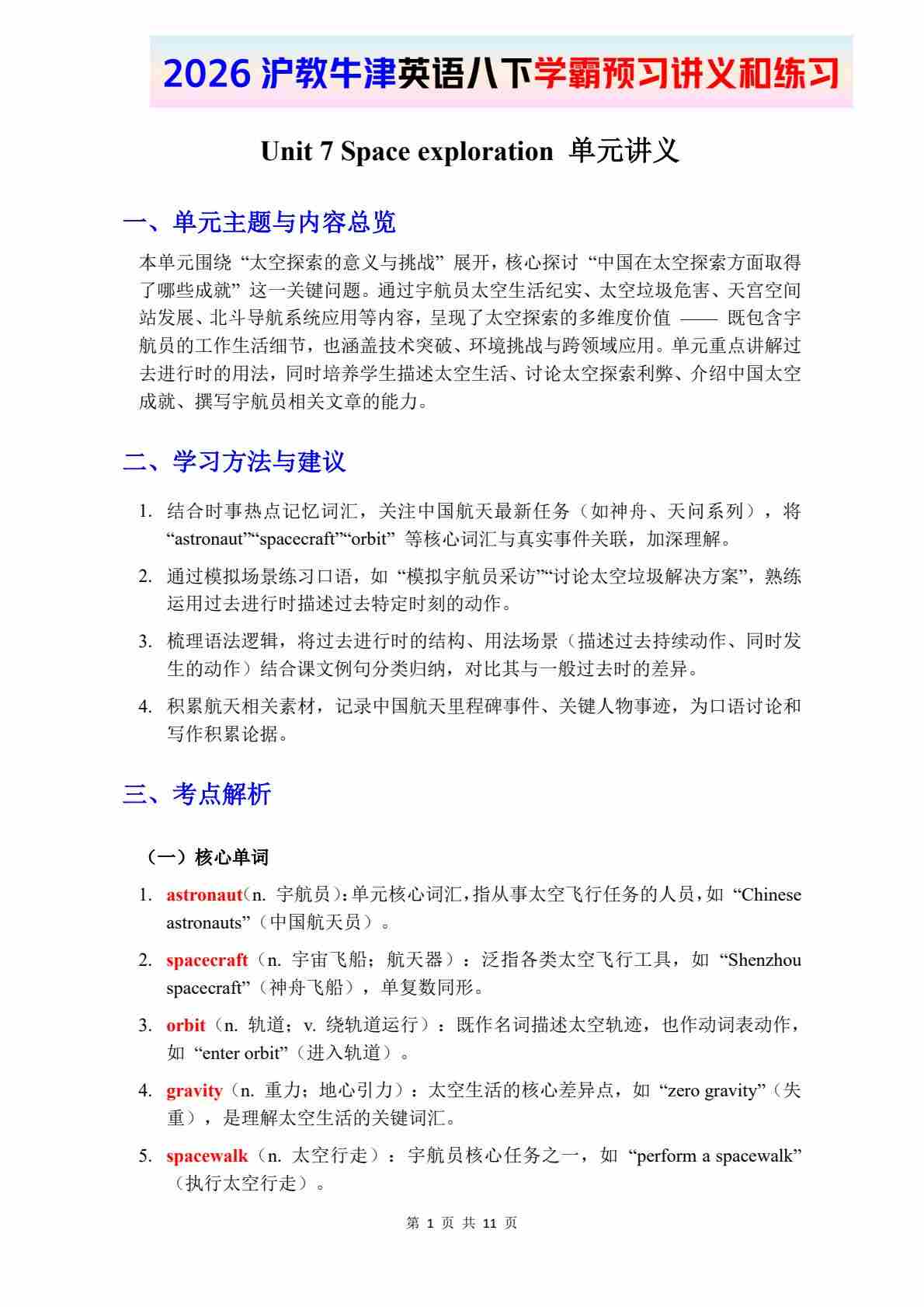 Unit 7 Space exploration 语法Grammar 过去进行时(原卷版)
