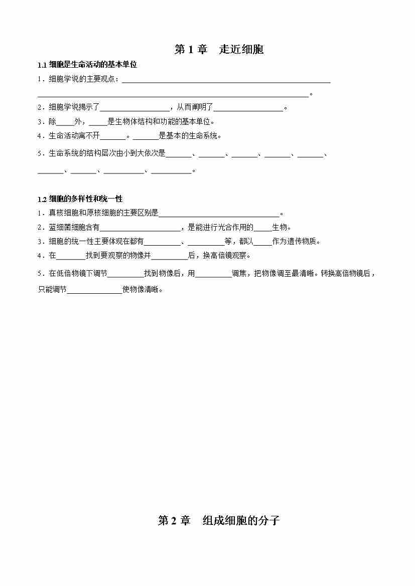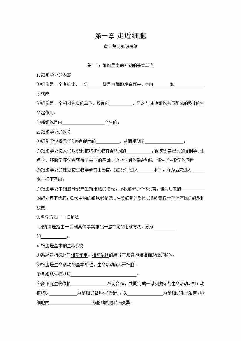 第1章 走近细胞(知识清单)(默写版)
