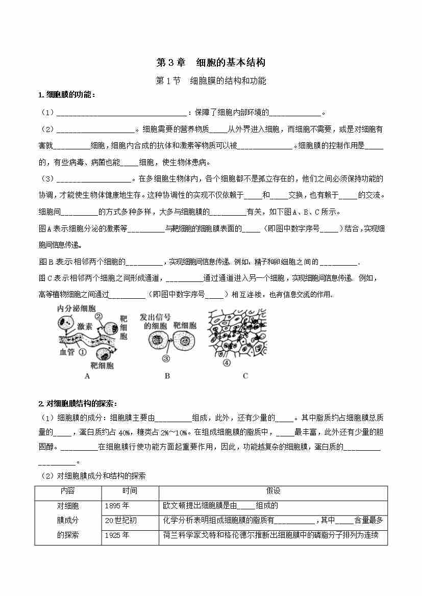第3章 细胞的基本结构(知识清单)(填空版)