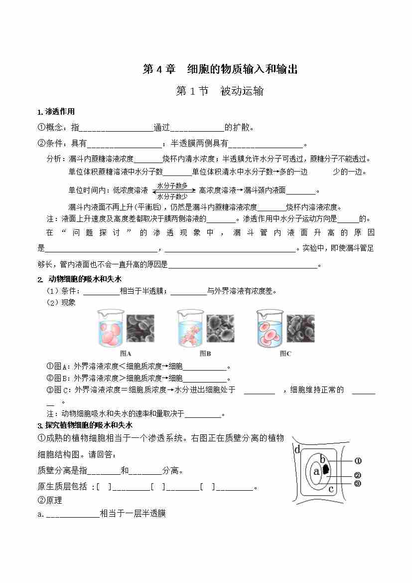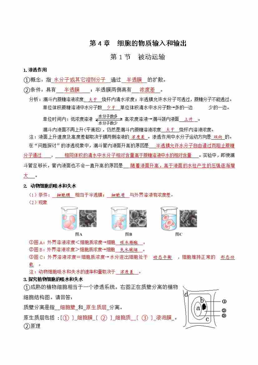 第4章 细胞的物质输入和输出(知识清单)(填空版)