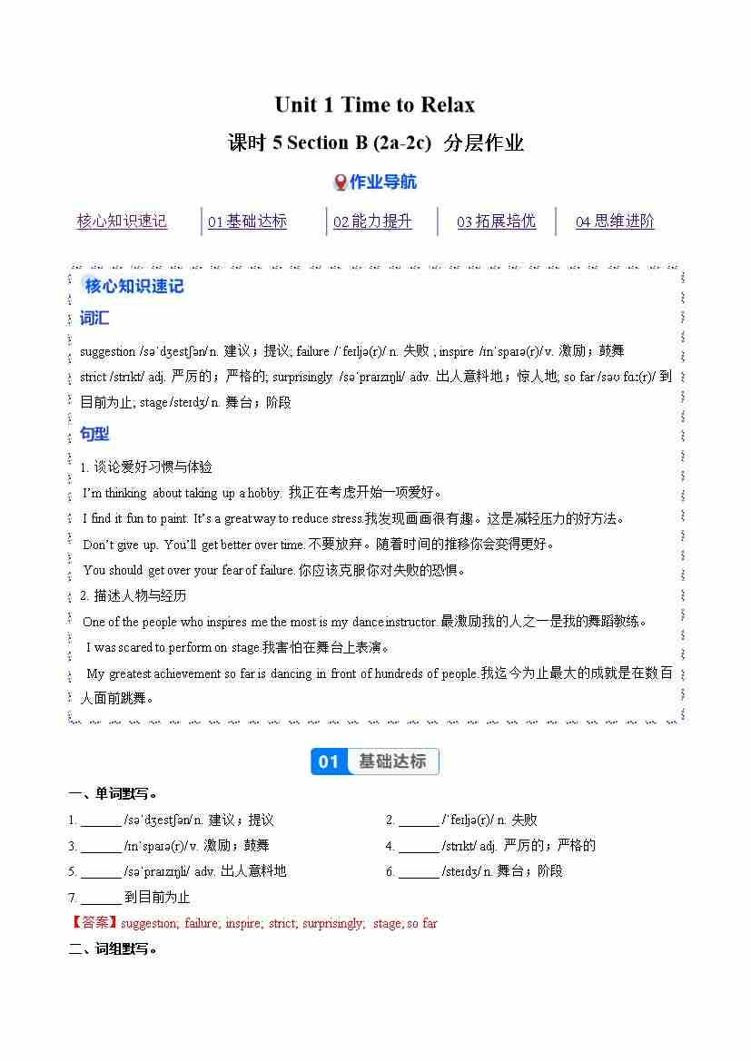 Unit 1 课时5 Section B 2a-2c(分层作业)(解析版)