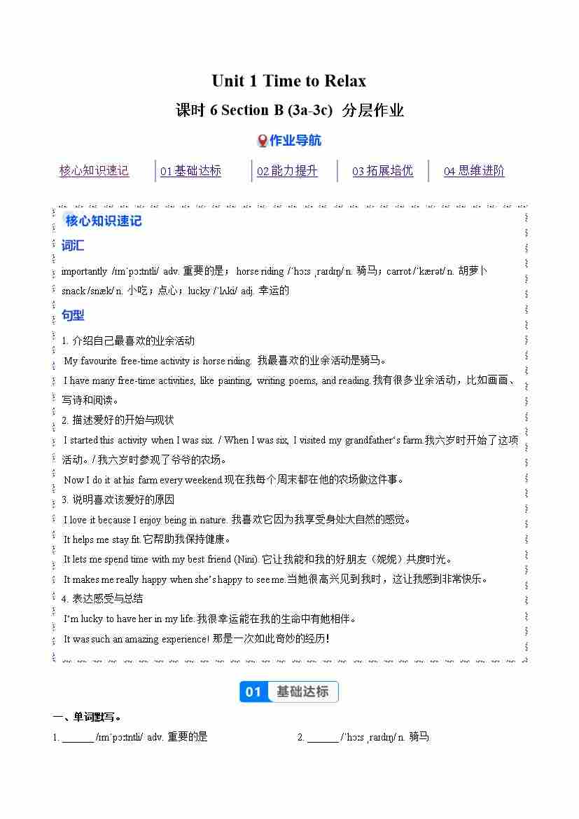 Unit 1 课时6 Section B 3a-3c(分层作业)(解析版)