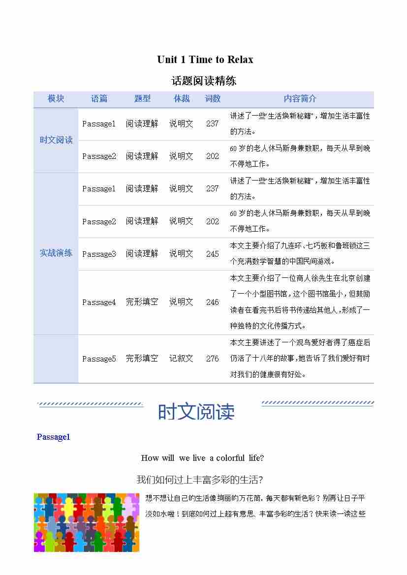 Unit 1 Time to relax(话题阅读精练)(解析版)