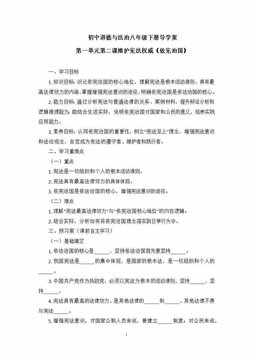 2.1 依宪治国 导学案-2025-2026学年统编版道德与法治八年级下册