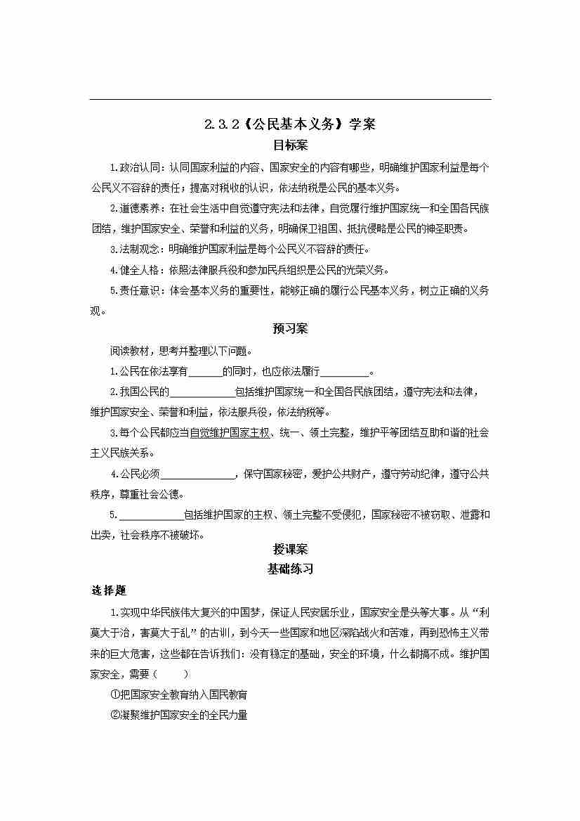 3.2 公民基本义务 学案 -2025-2026学年统编版道德与法治八年级下册