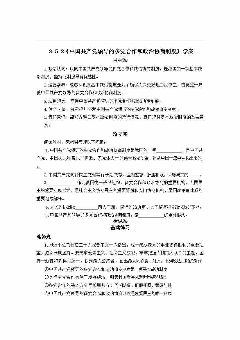5.2 中国共产党领导的多党合作和政治协商制度 学案- 2025-2026学年统编版道德与法治八年级下册