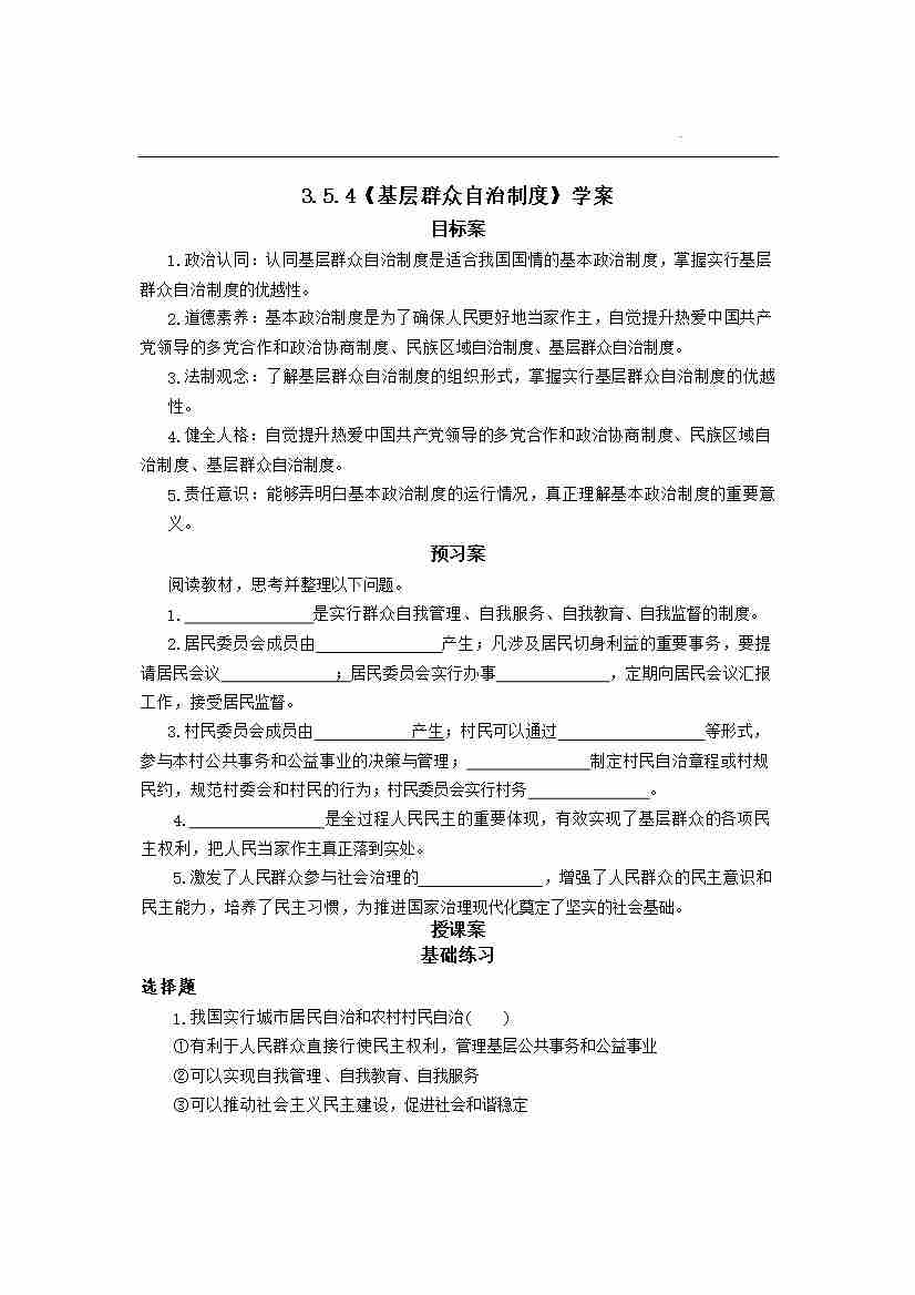5.4 基层群众自治制度 学案-2025-2026学年统编版道德与法治八年级下册