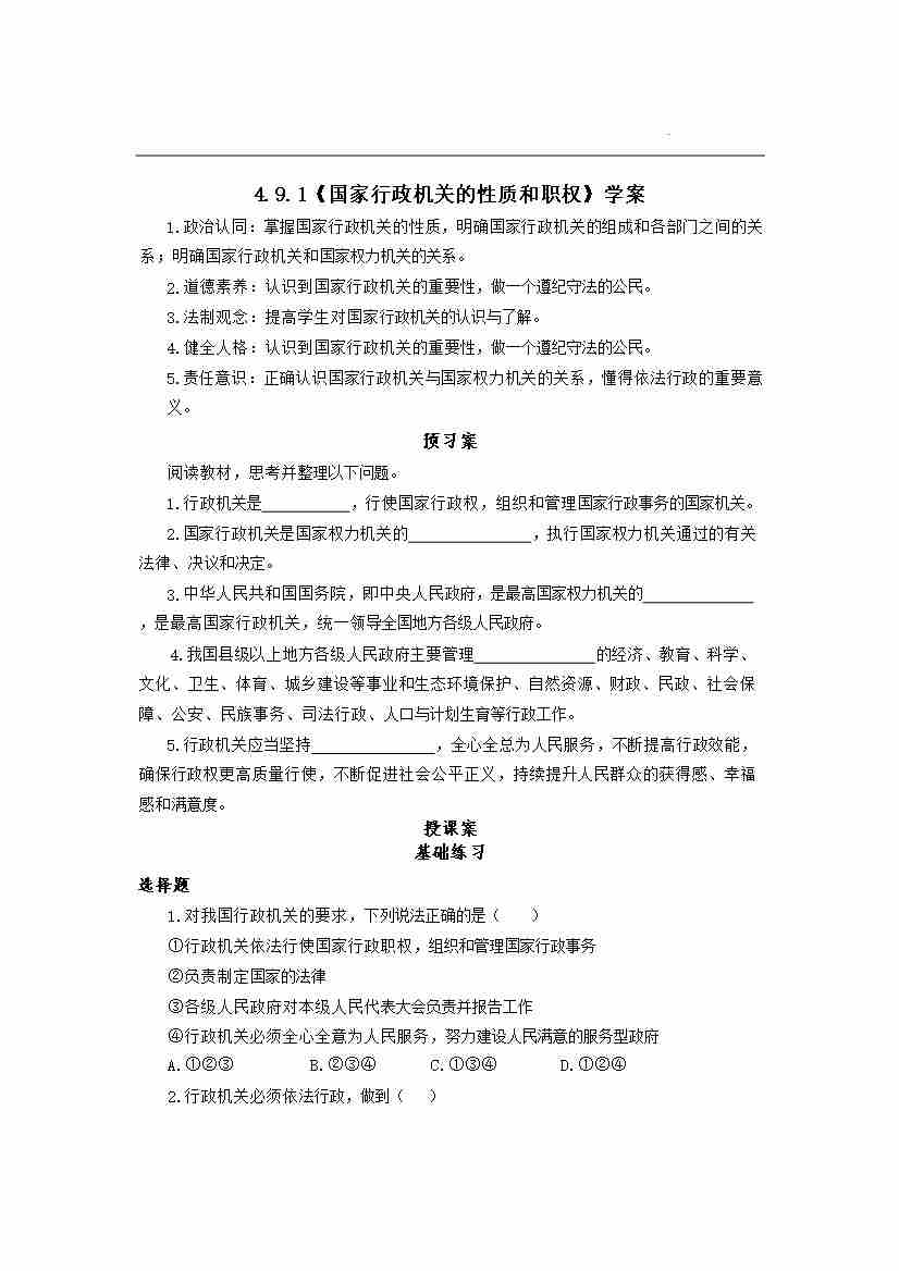 9.1 国家行政机关的性质和职权 学案-2025-2026学年统编版道德与法治八年级下册