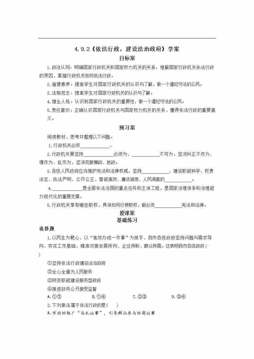 9.2 依法行政建设法治政府 导学案-2025-2026学年统编版道德与法治八年级下册