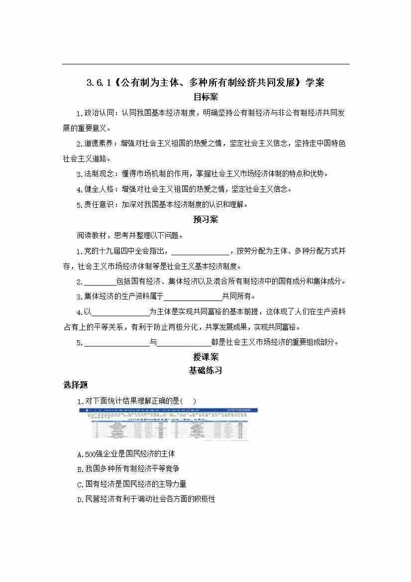 6.1 公有制为主体、多种所有制经济共同发展 导学案-2025-2026学年统编版道德与法治八年级下册