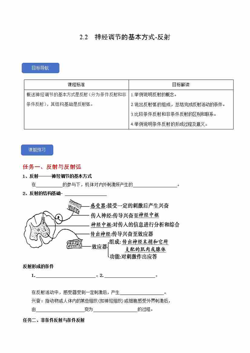 2.2 神经调节的基本方式-反射(人教版选择性必修1)学生版