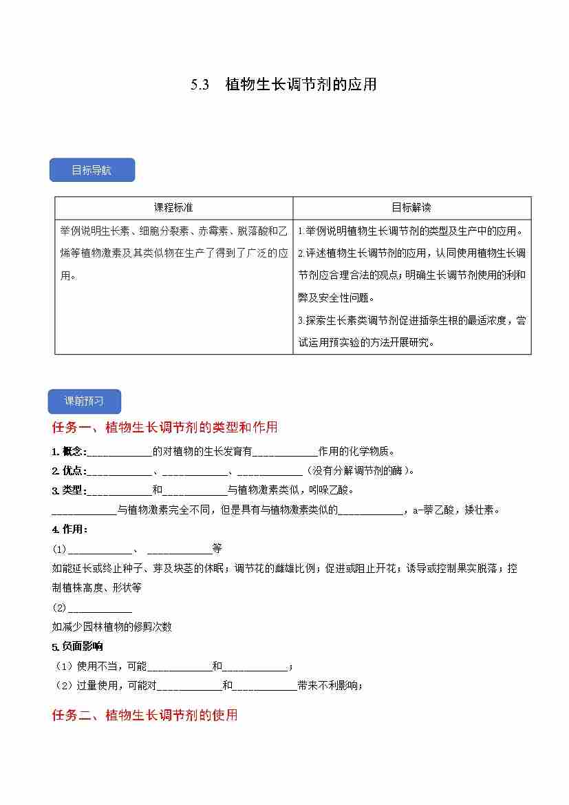 5.3 植物生长调节剂的应用(人教版选择性必修1)学生版