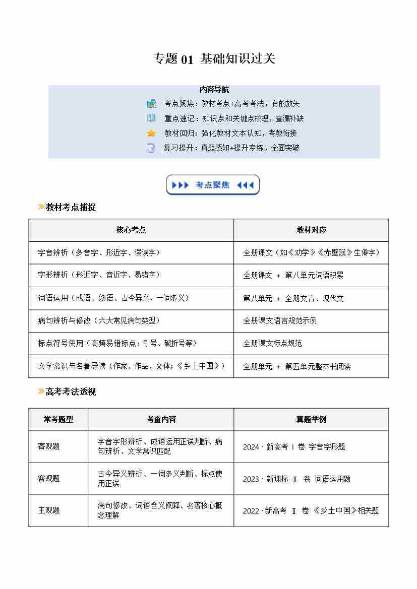 专题01 基础知识过关(寒假复习讲义)(学生版)