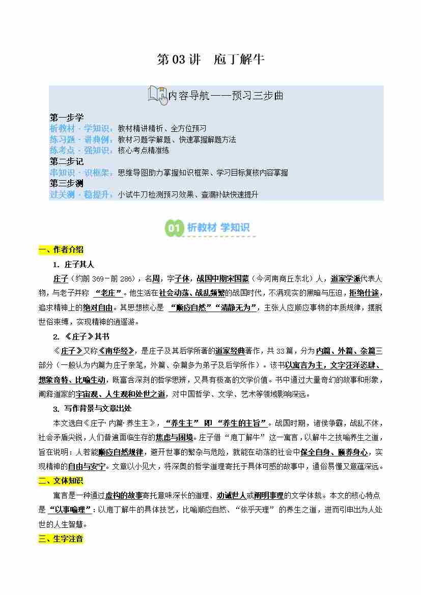 第03讲 庖丁解牛(寒假预习讲义)(学生版)
