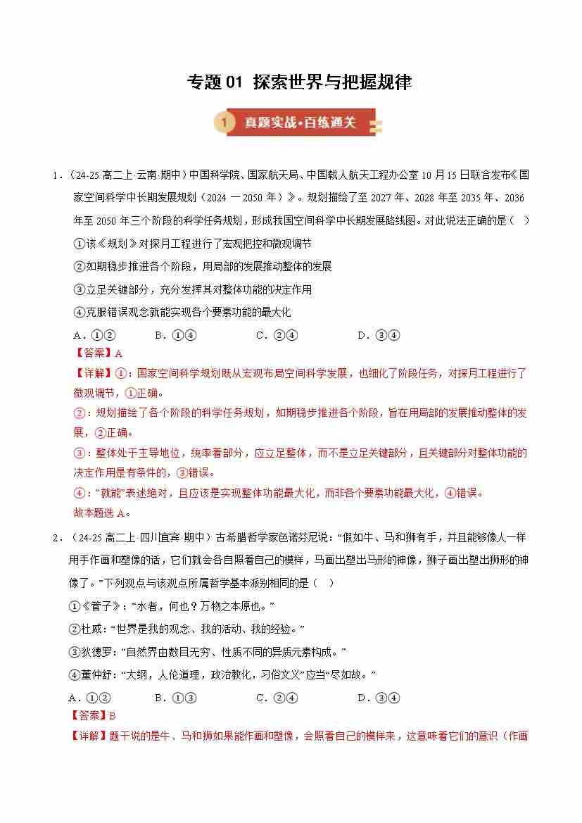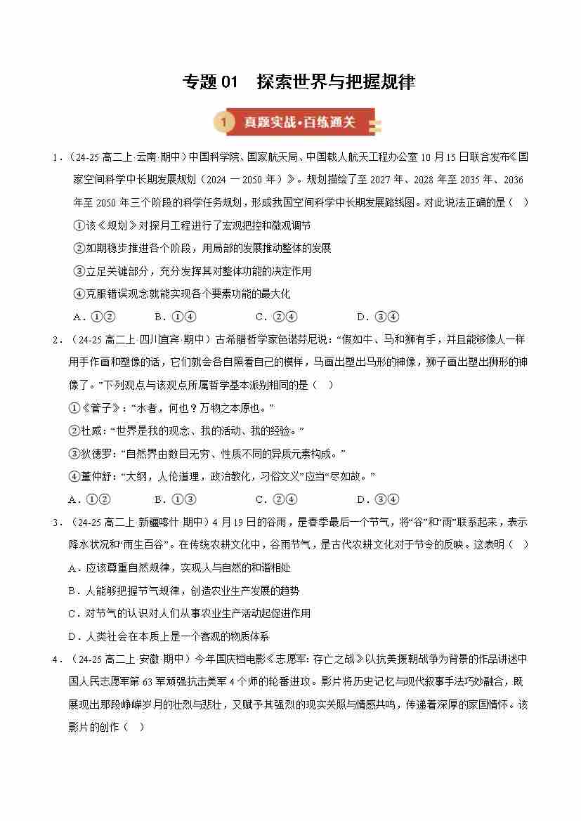 专题01 探索世界与把握规律(期中专项训练)(学生版)
