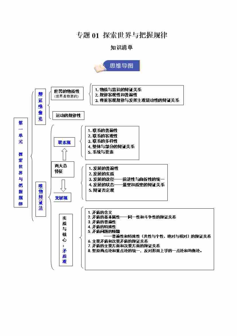专题01 探索世界与把握规律(期中知识清单)(学生版)