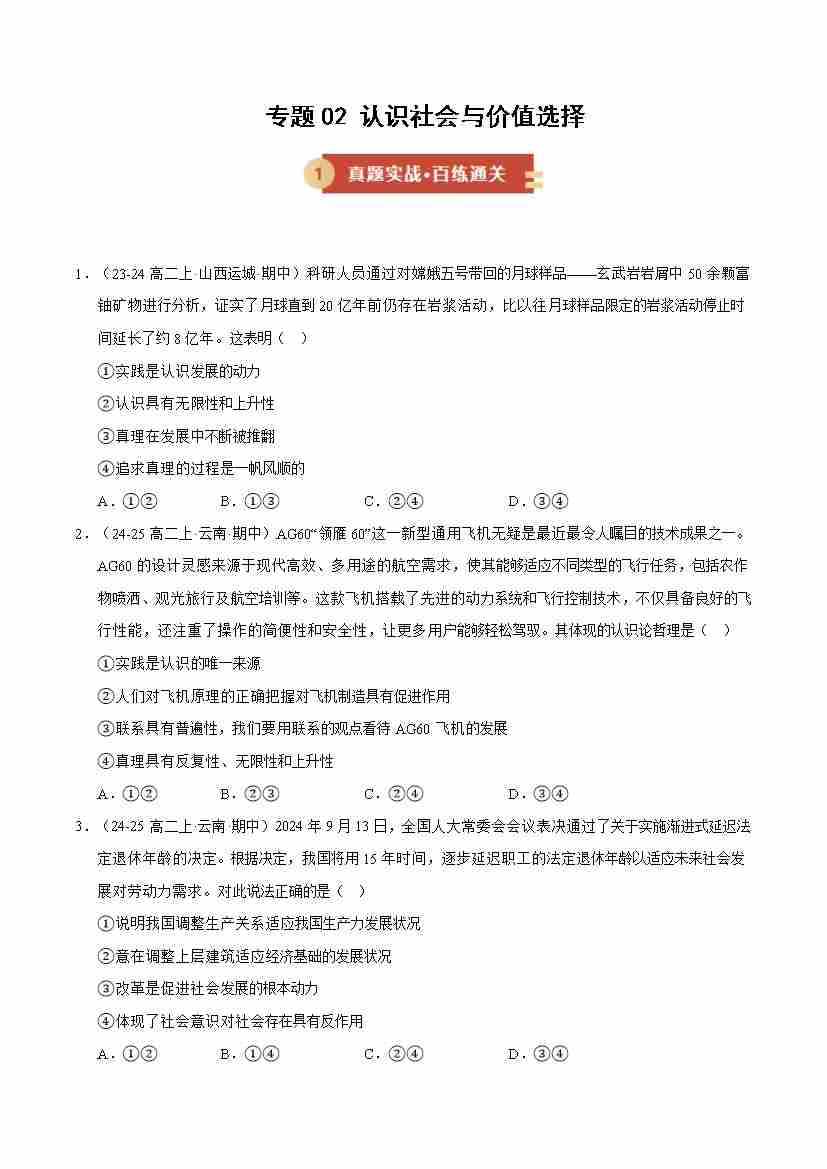专题02 认识社会与价值选择(期中专项训练)(学生版)