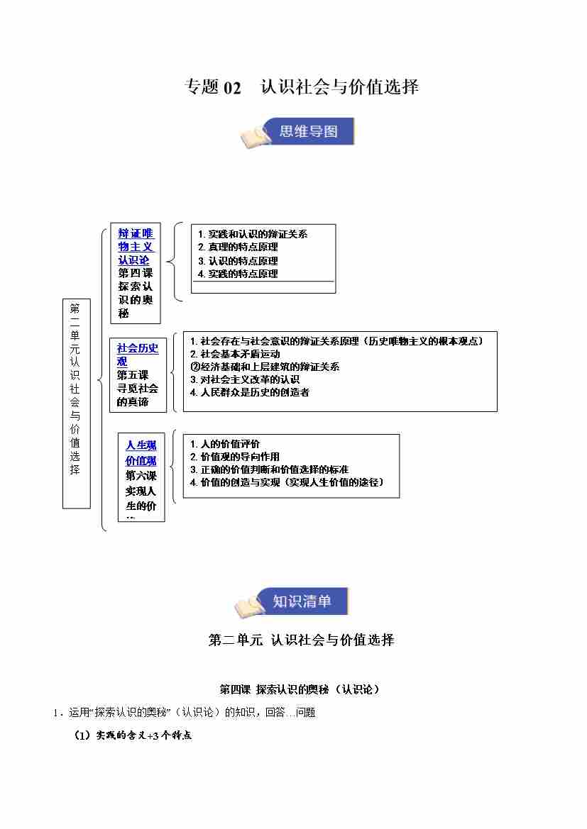 专题02 认识社会与价值选择(期中知识清单)(学生版)