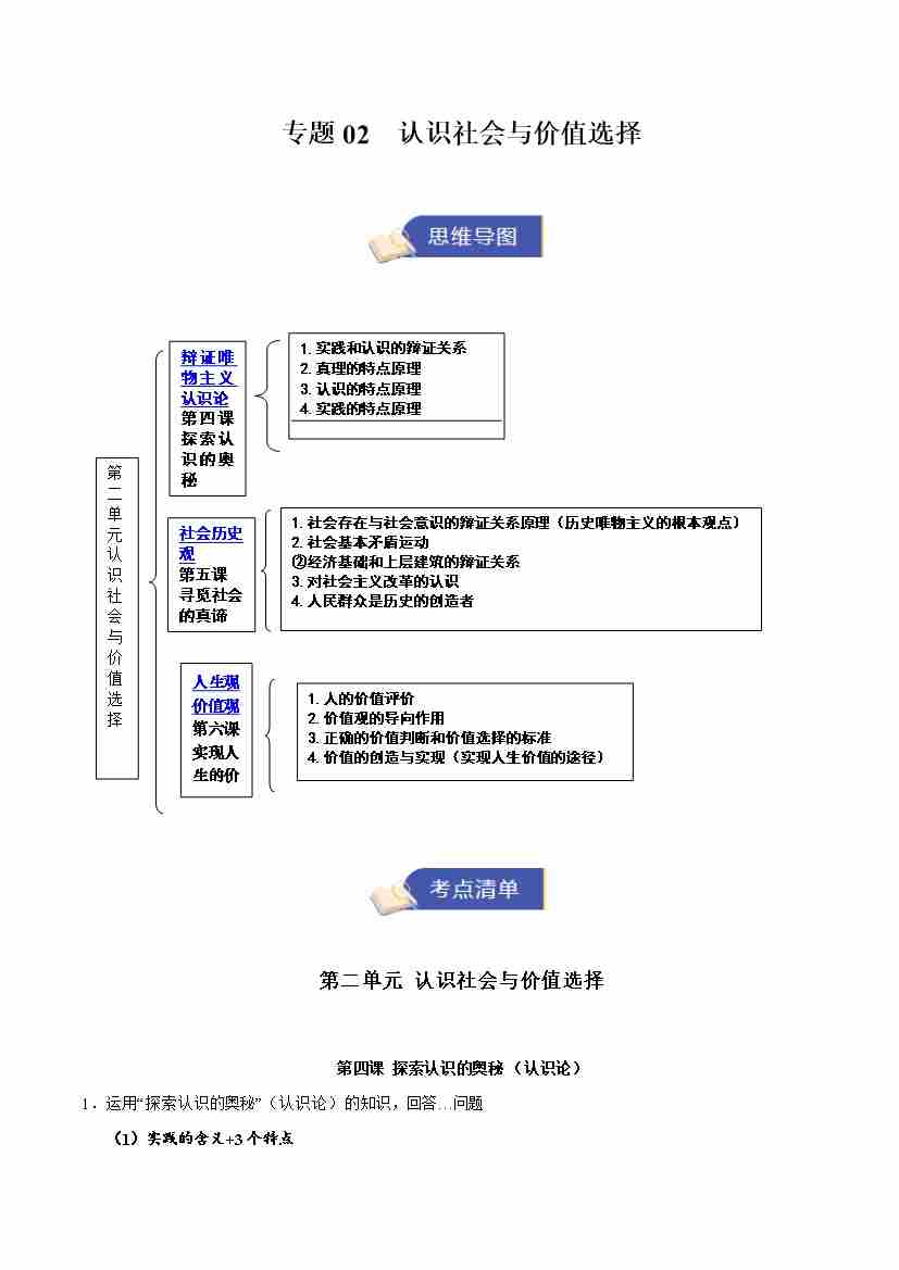 专题02 认识社会与价值选择(期中知识清单)(教师版)