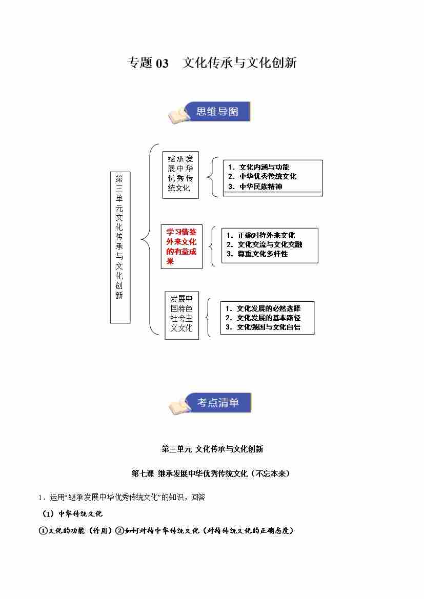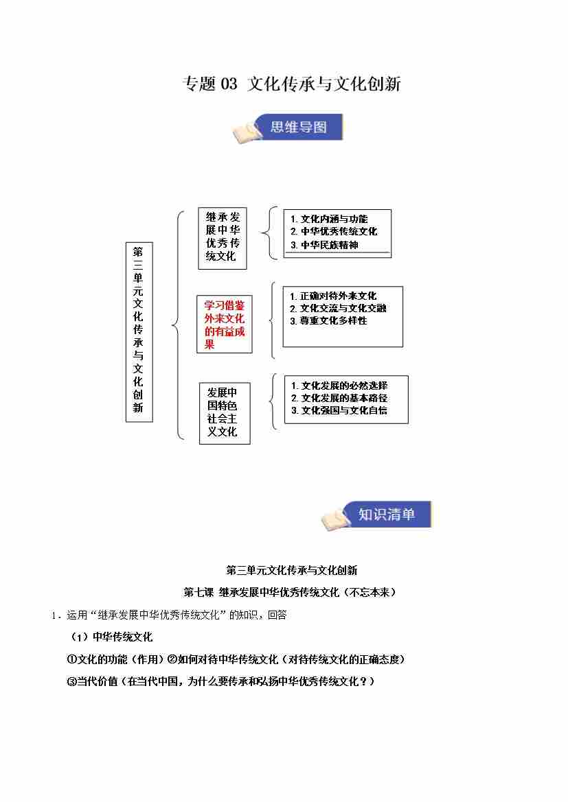 专题03 文化传承与文化创新(期中知识清单)(教师版)