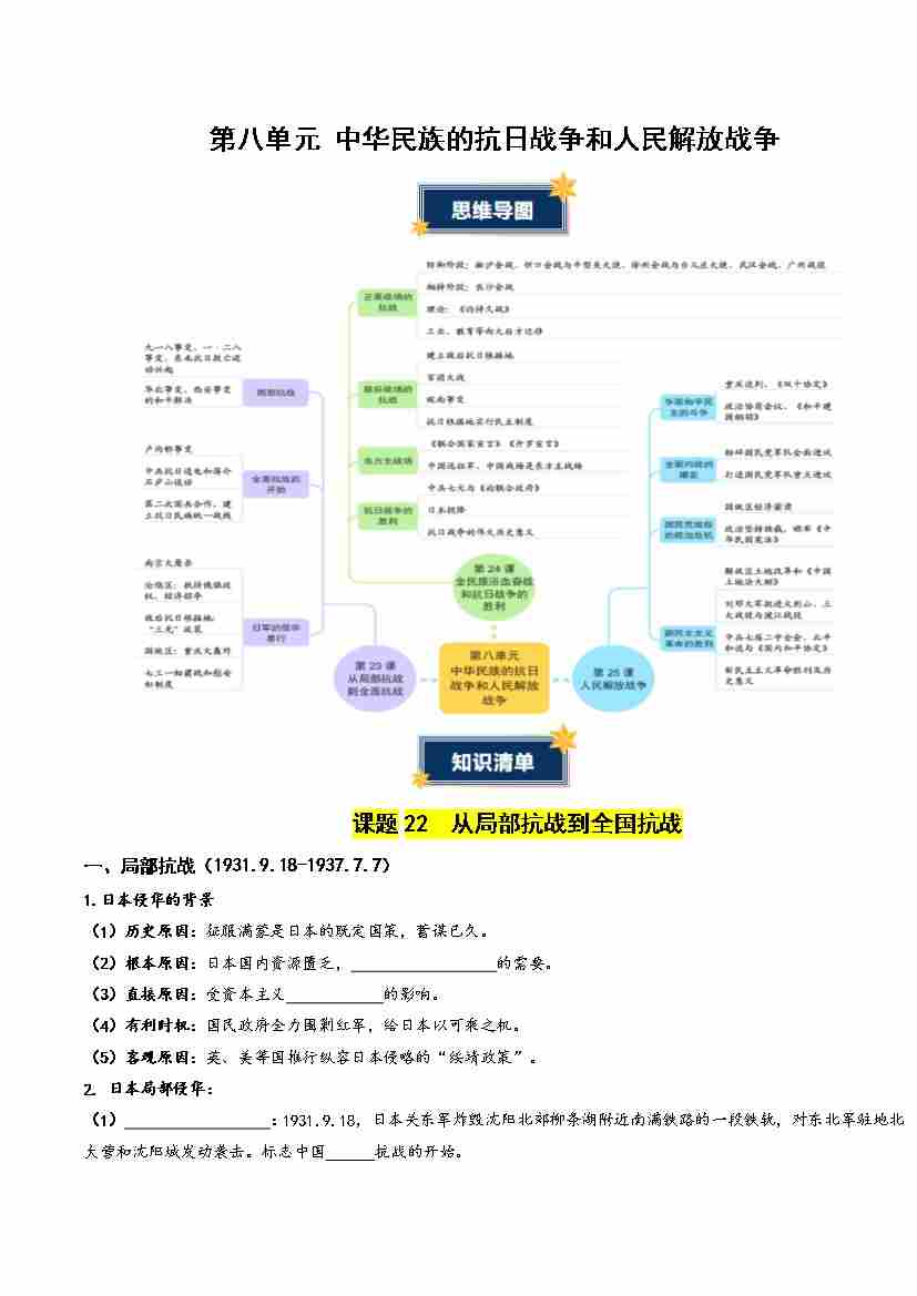 第八单元 中华民族的抗日战争和人民解放战争(知识清单)(挖空版)