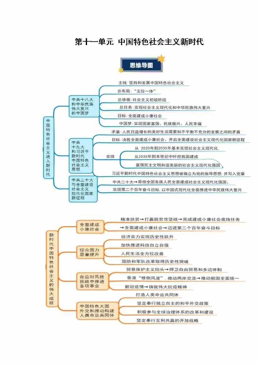 第十一单元 中国特色社会主义新时代(知识清单)(挖空版)