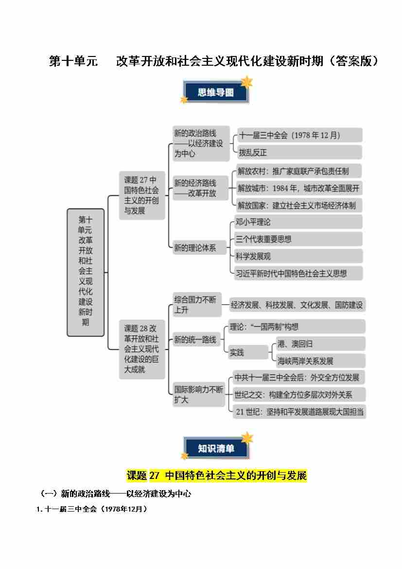 纲要上历史第十单元 改革开放和社会主义现代化建设新时期(知识清单)(答案版)