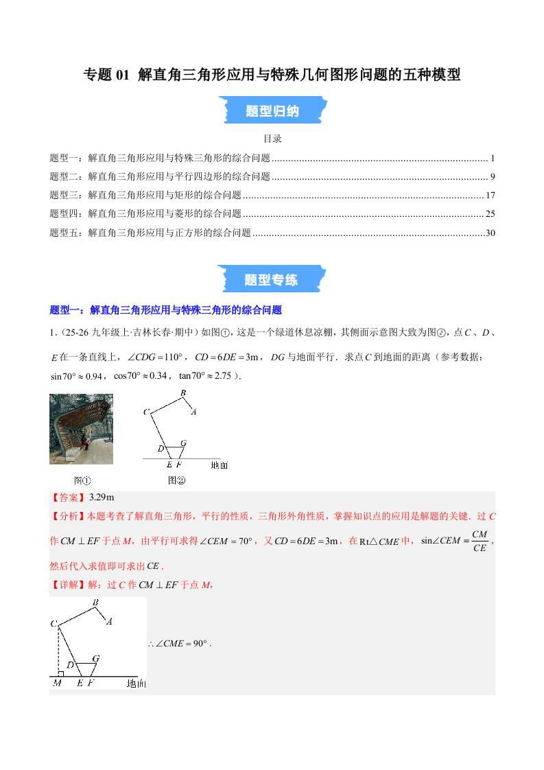 专题01 解直角三角形应用与特殊几何图形问题的五种模型(高效培优专项训练)(解析版)