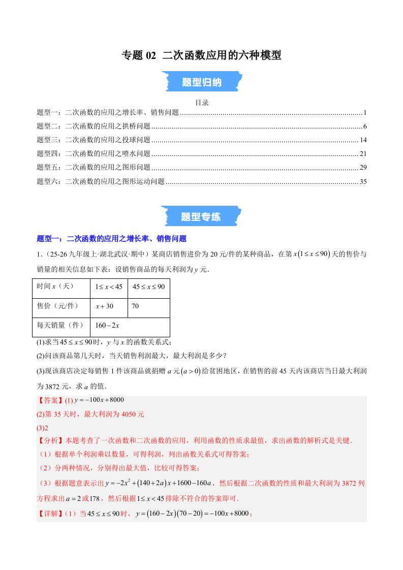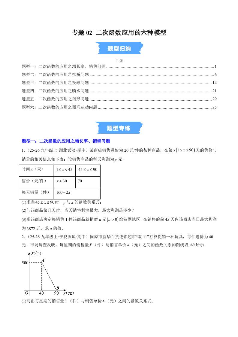 专题02 二次函数应用的六种模型(高效培优专项训练)(原卷版)