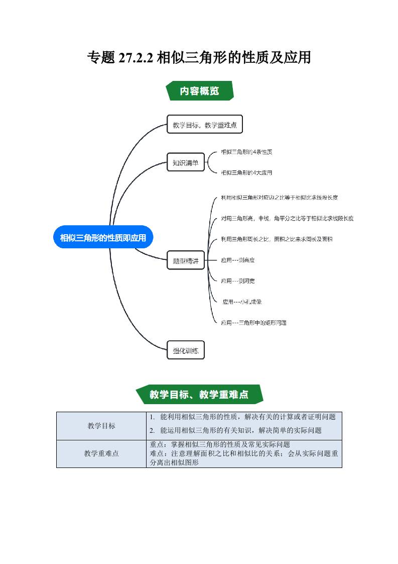 专题27.2.2 相似三角形的性质及应用(高效培优讲义)(原卷版)