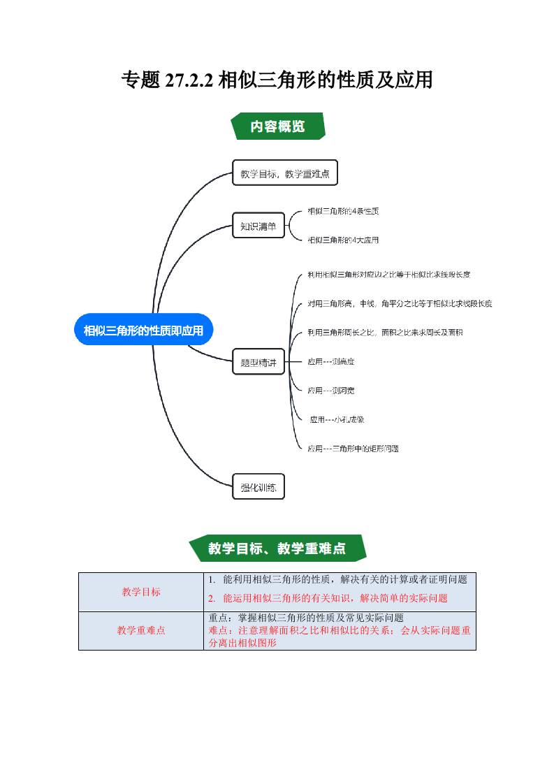 专题27.2.2 相似三角形的性质及应用(高效培优讲义)(解析版)