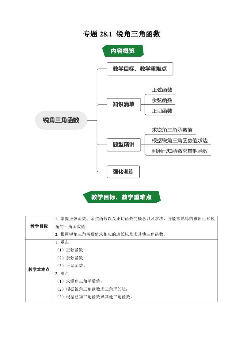 专题28.1 锐角三角函数(高效培优讲义)(原卷版)