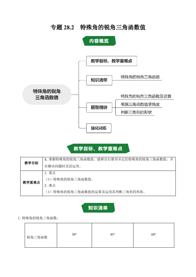 专题28.2 特殊角的锐角三角函数值(高效培优讲义)(原卷版)
