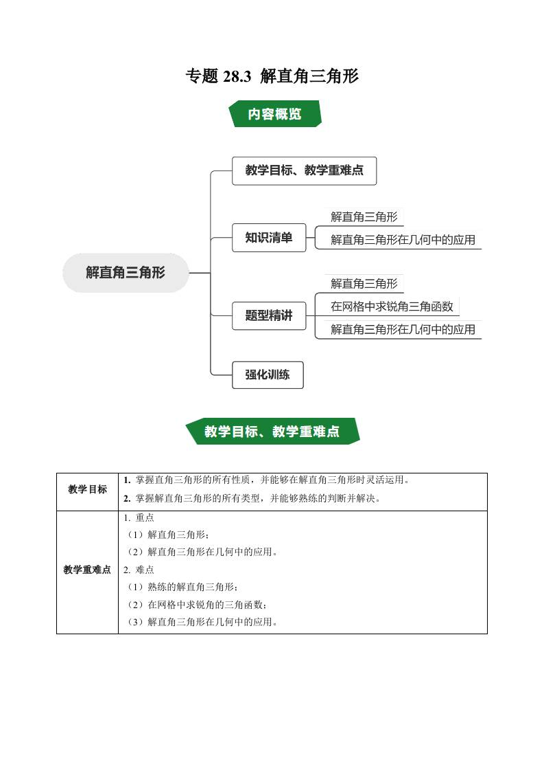 专题28.3 解直角三角形(高效培优讲义)(原卷版)