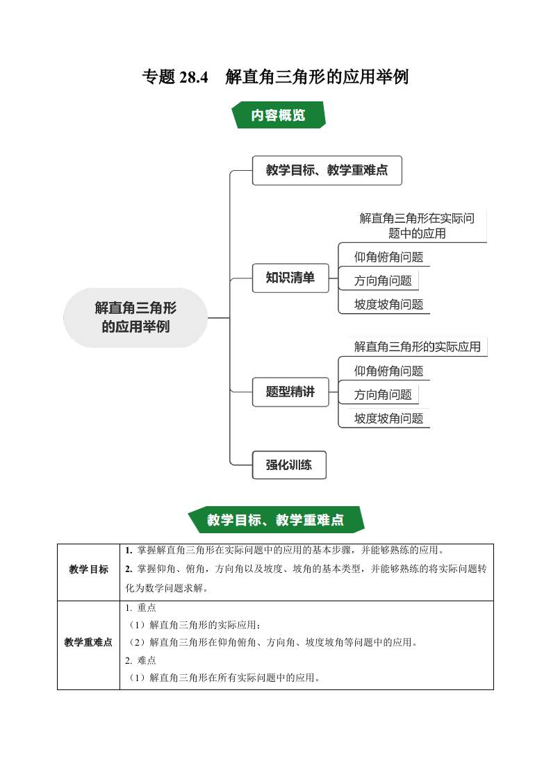 专题28.4 解直角三角形的应用举例(高效培优讲义)(解析版)